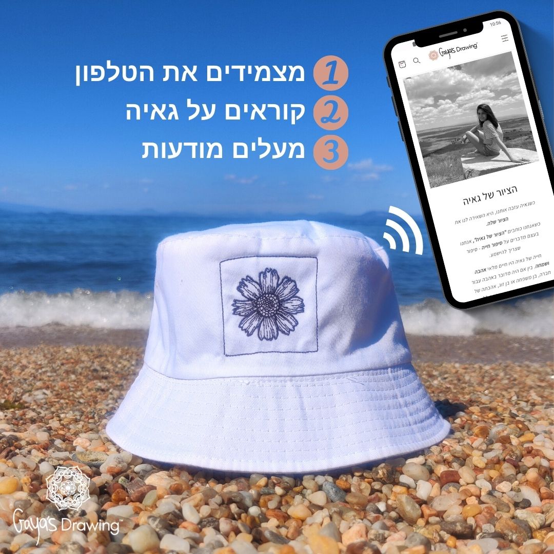 ✓ הצמידו את הטלפון (כשהוא לא נעול) לרקמה שעל הכובע (ממש כמו לשלם עם הנייד) והדף אודות גאיה יפתח אוטומטית